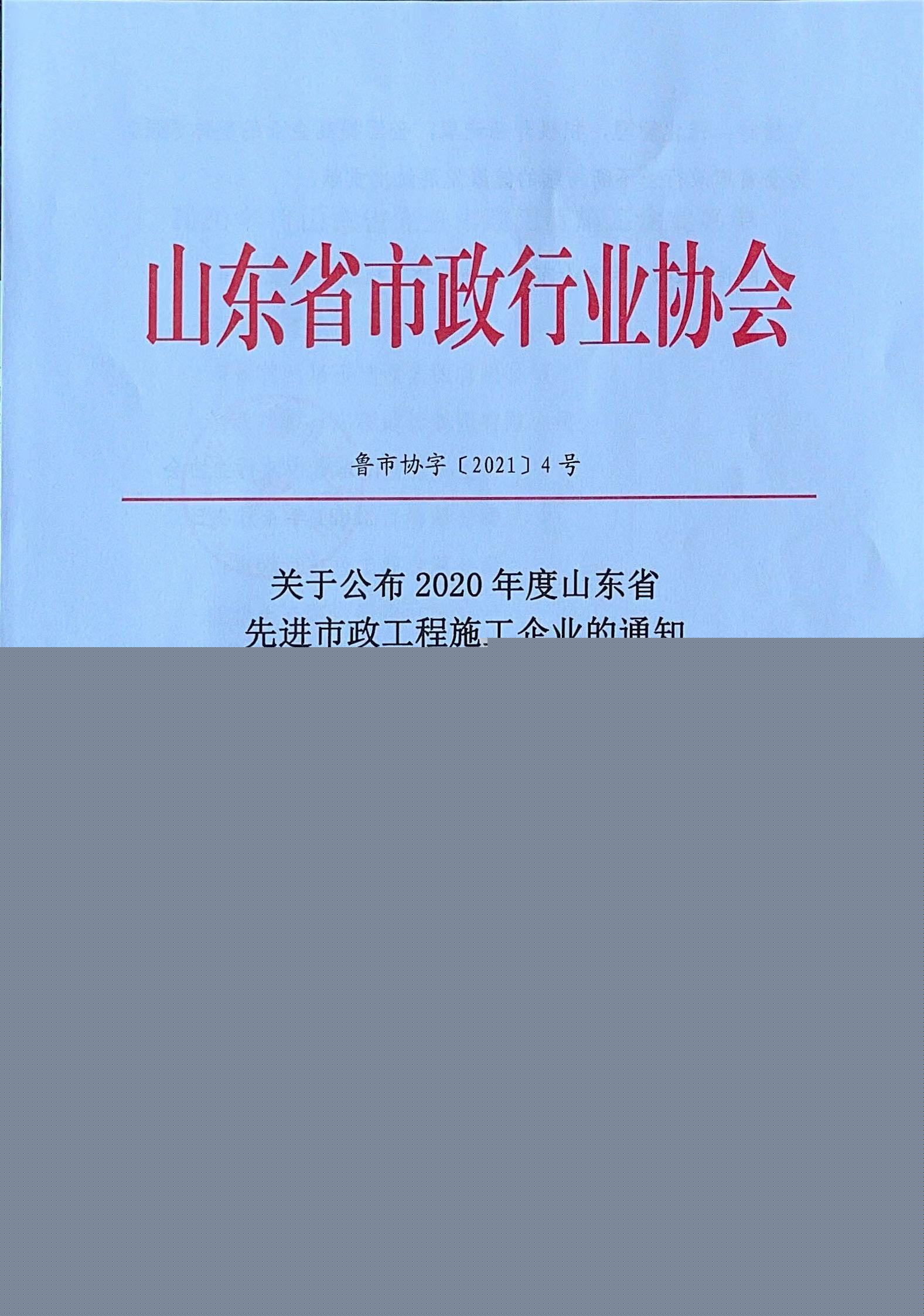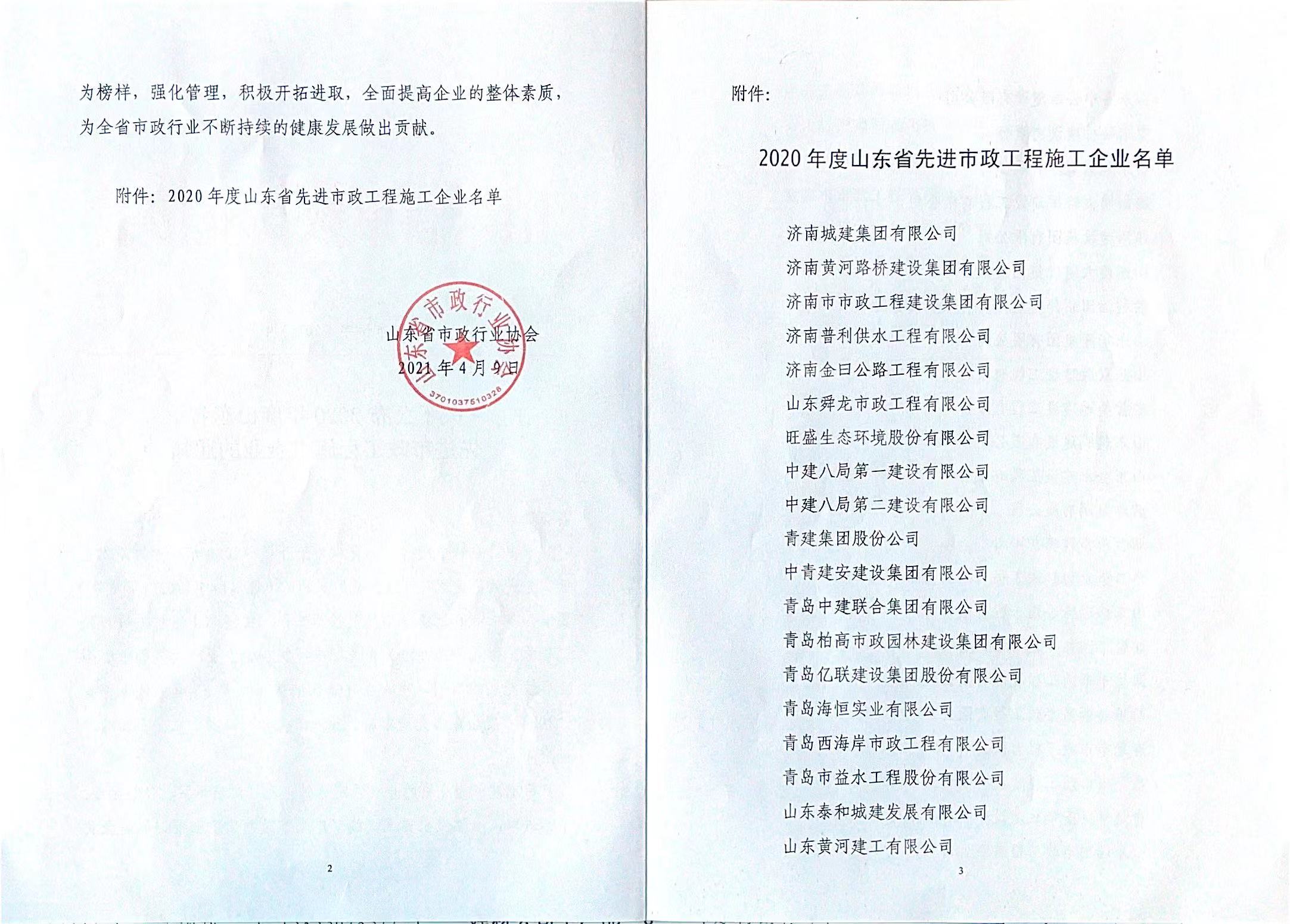 公司被評為“山東省**市政工程施工企業”